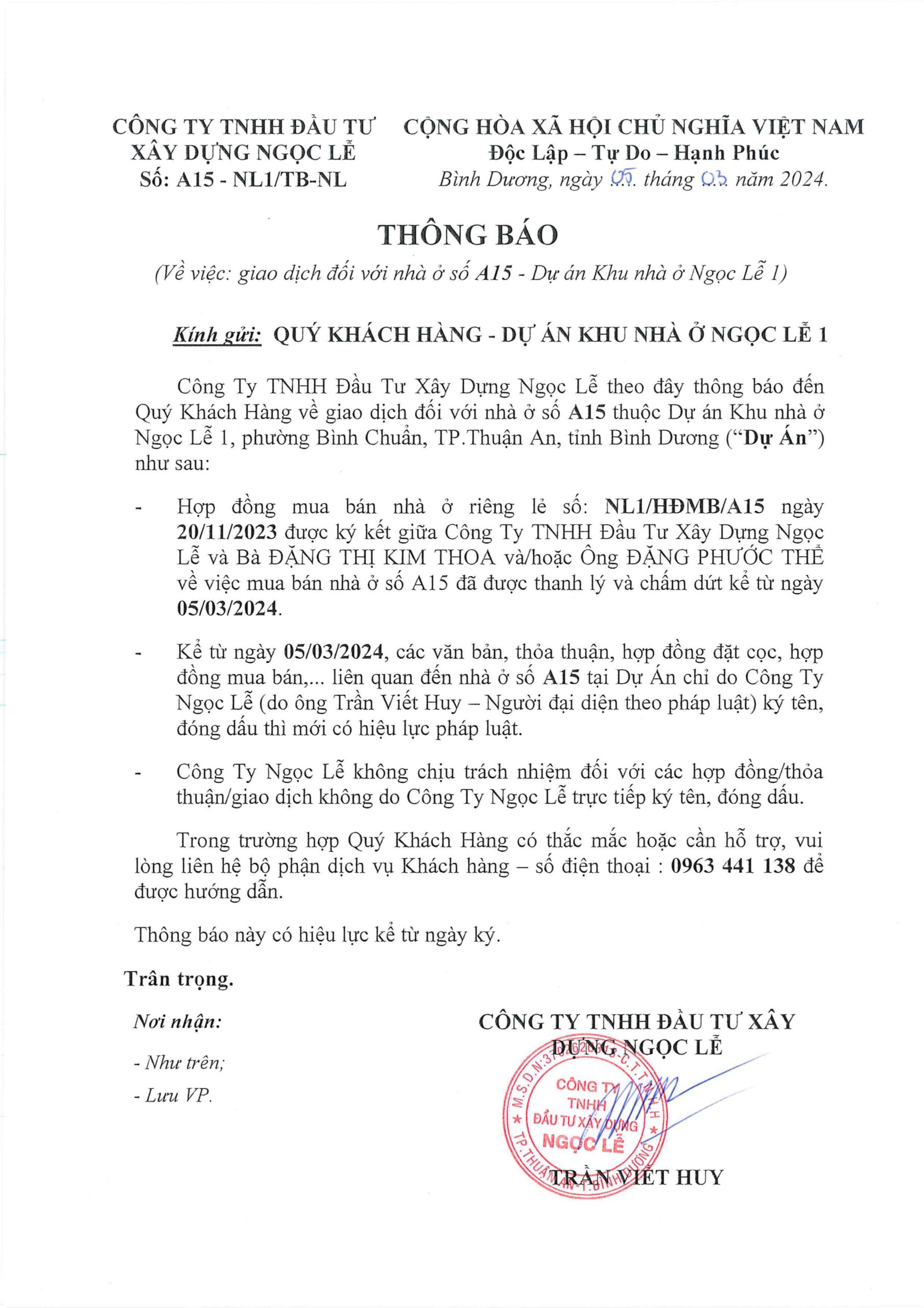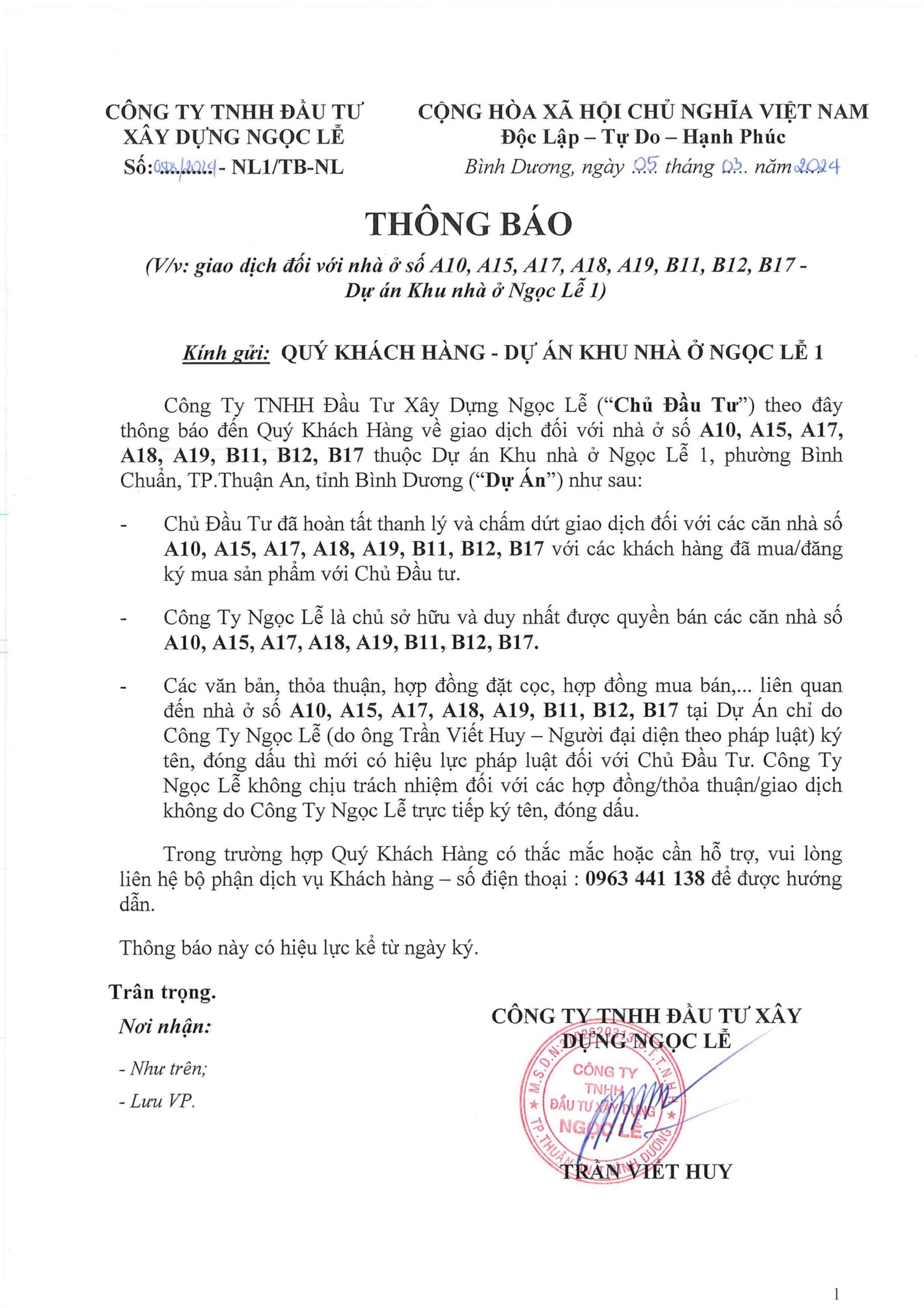 - Tên dự án: Khu nhà ở Ngọc Lễ 1.