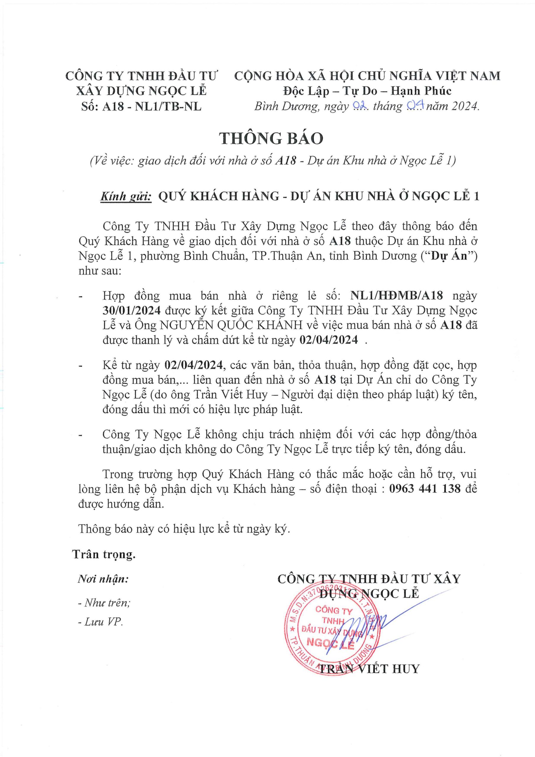 - Chủ đầu tư: Công Ty TNHH Đầu Tư Xây Dựng Ngọc Lễ.