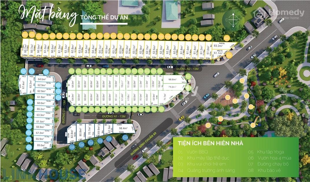 - Quy mô: 4 Khu gồm 82 căn nhà liên kế.